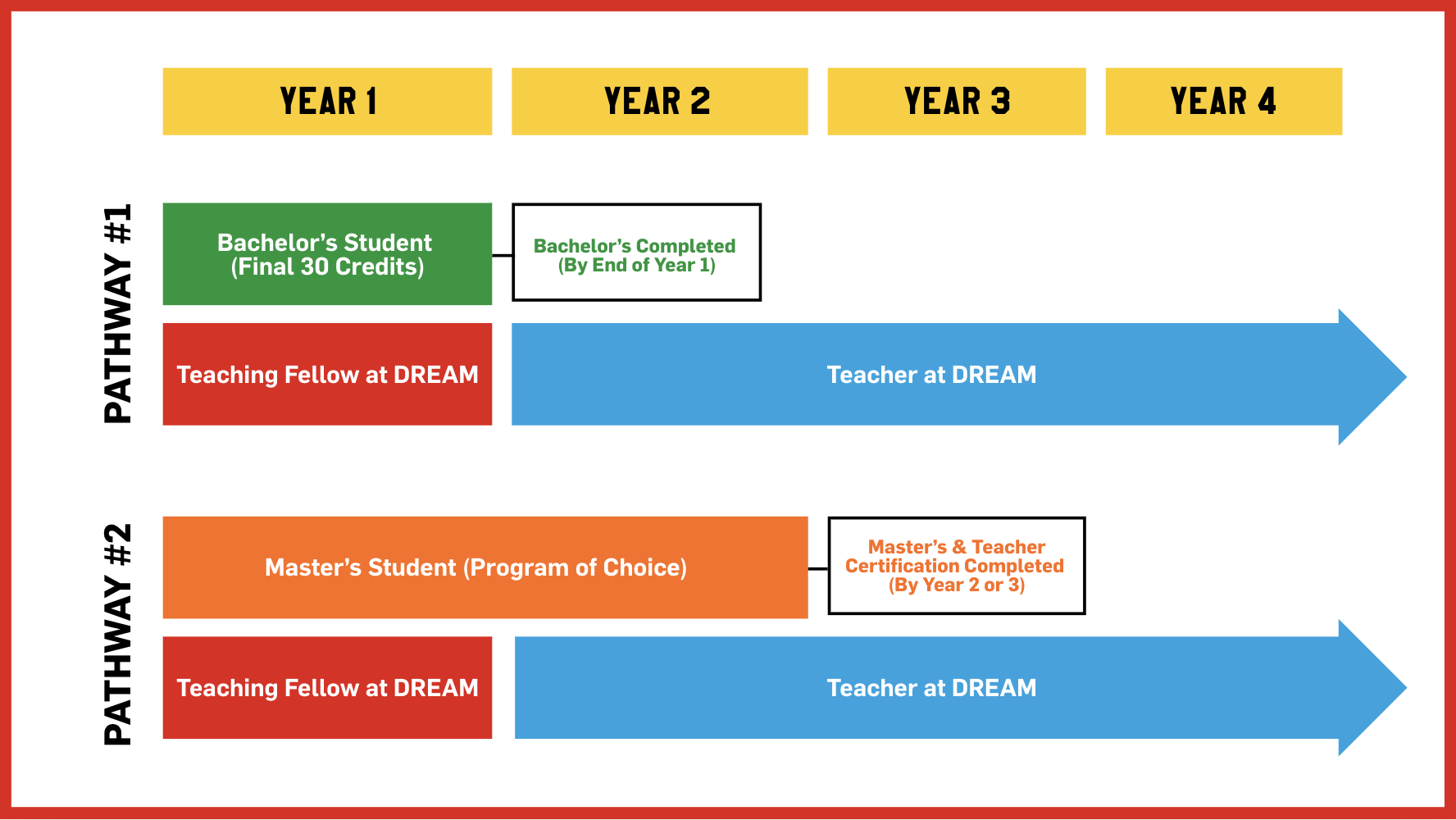 • Results in full-time placement as a DREAM teacher upon successful program completion